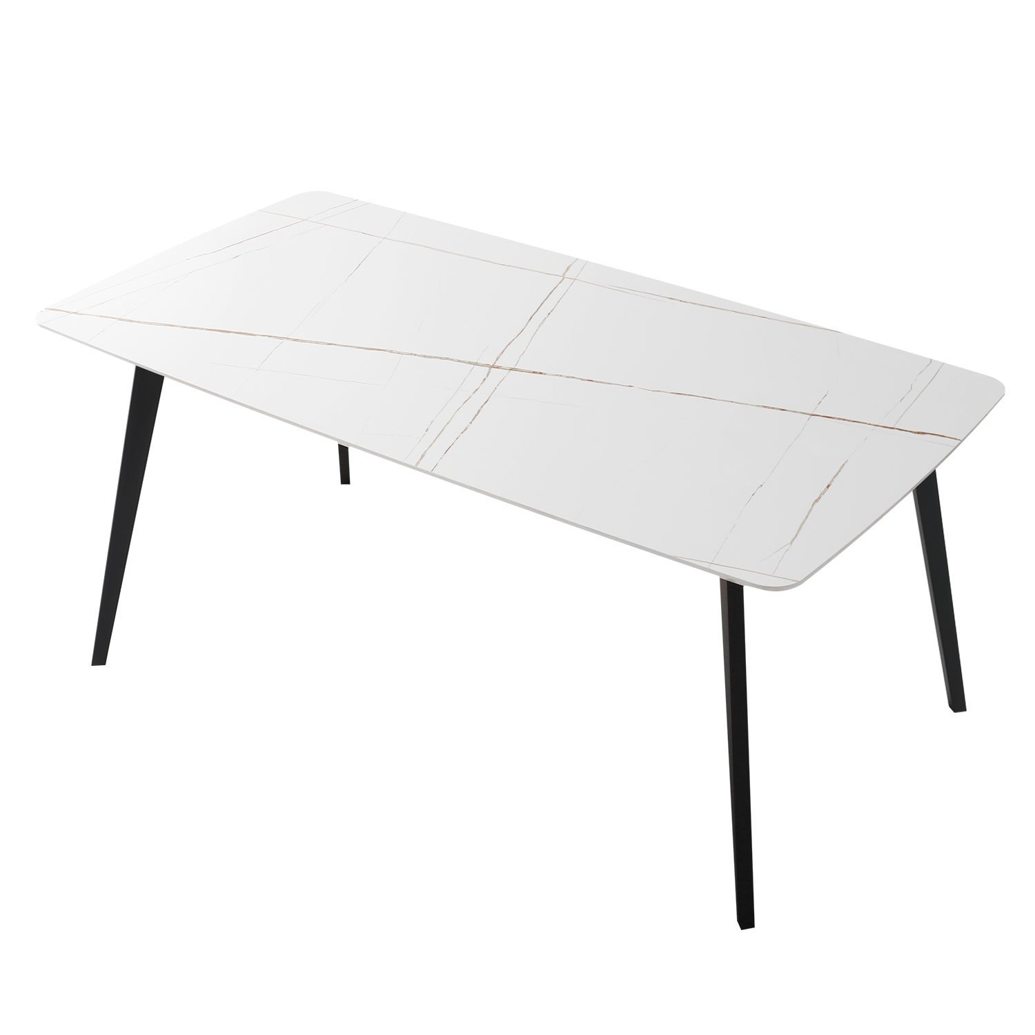 J3710 Porcelain Dining Table White 63''This dining table equipped with big table top. Suitable for 4-8 person at the same time. Not only as dining kitchen table, it can also be display table, large coffee table, presentation table, etc.A good choice for family meeting or parties. The desktop board is made of 12mm thickness porcelain and metal legs for non-toxic and environment protection, this dining table will support long-term use. It's stable and durable, brings mid-century and industrial style to your room Easy to Setup & Clean: With full set of screws and tools and instruction, it is easy to assemble, just need to take 5-10 minutes. Smooth table top can be quick cleaned with a damp cloth. Put the screws in loosely until all pieces are together and then go back and tighten them all