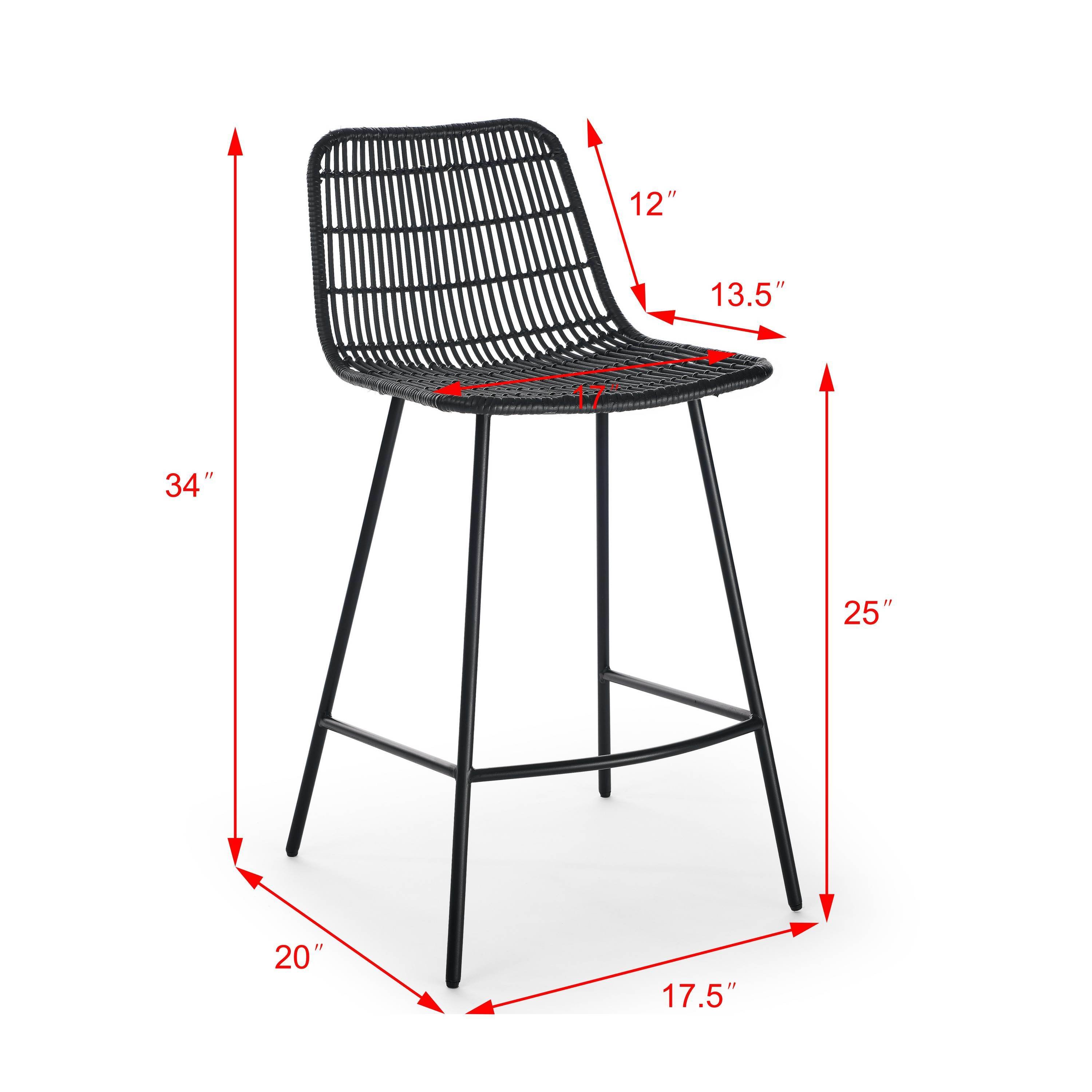 Set of 2, Natural Rattan Indoor Counter Chair , Black Finish Steel legs,Black (17.5"x20"x34")