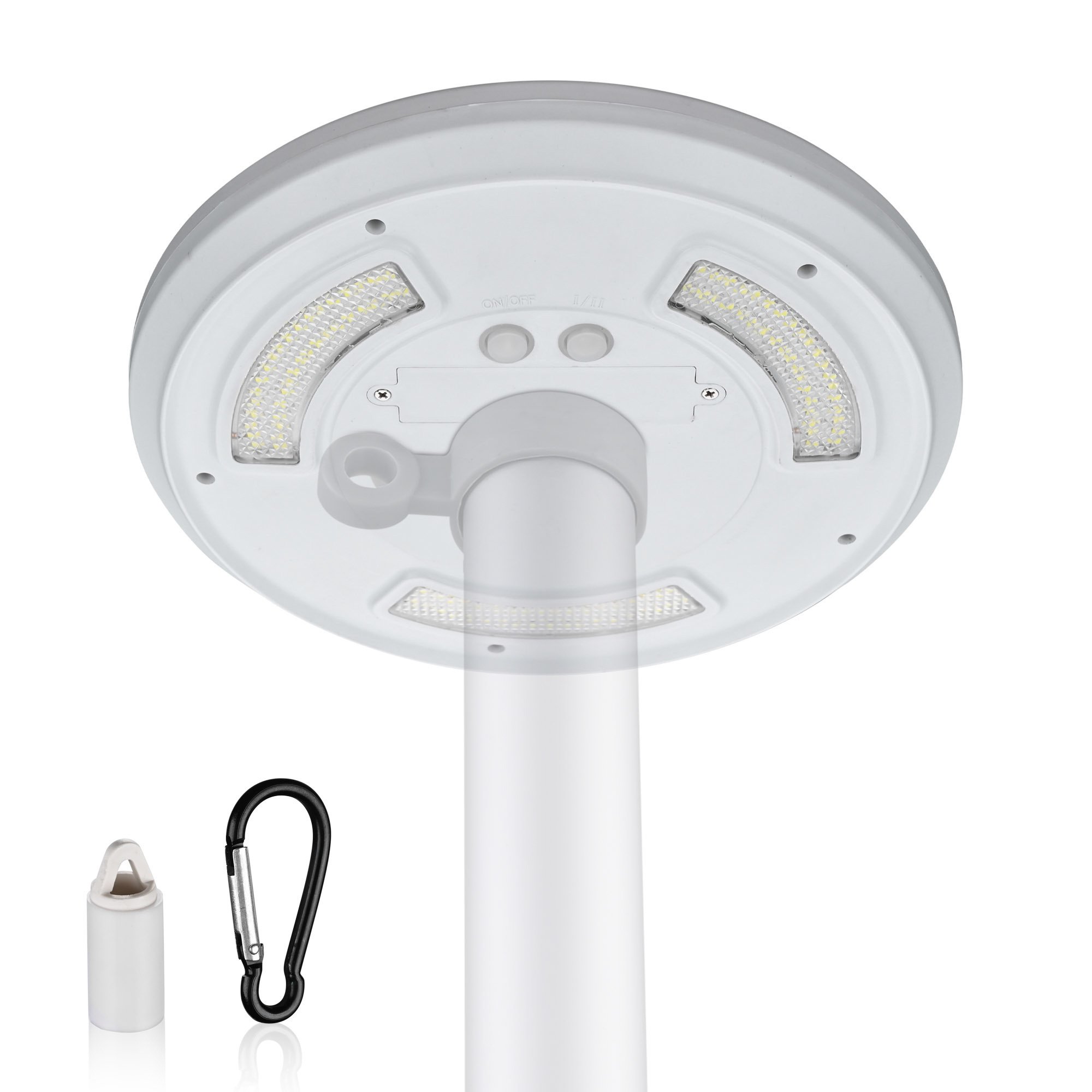 - Solar Powered Flagpole Light - Solar Flag Pole Light with 111 cool white LEDs emits 555 lumens of bright light; lighting up your flag & flag pole ornaments in the darkness for eye-catching decoration; Also can be installed by carabiners onto the gate for outdoor lighting such as camping; roadside; courtyard; etc.